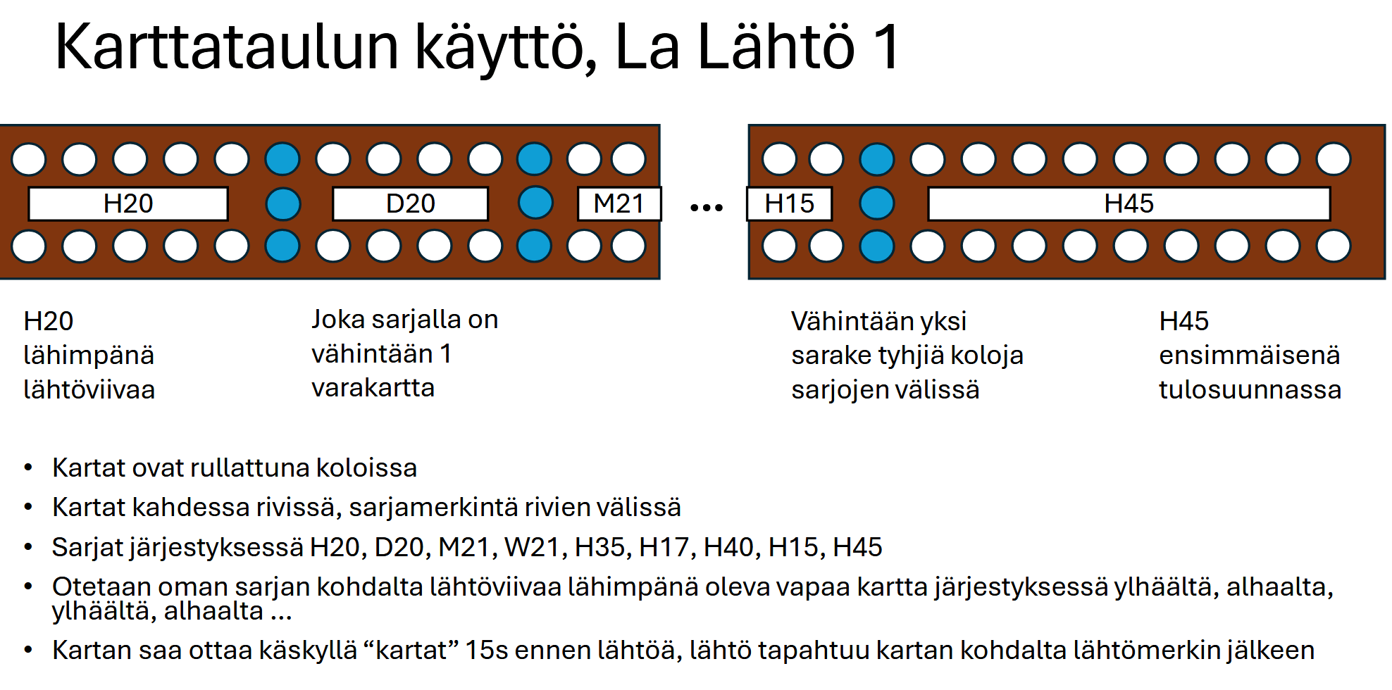 - M21E/H20- ja W21E/D20-sarjoilla on kartan kääntö takaa-ajon ensimmäisellä kartalla. Ensimmäinen puolisko on karttaseinällä rullatun kartan sisäpuolella, toinen puolisko ulkopuolella.